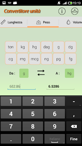 Grazie a questa App potrai fare equivalenze di lunghezza, peso, volume, temperatura e in più avrai la possibilità di svolgere conversioni tra le valute più scambiate in tempo reale!