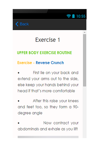 Applying different types of exercises for your upper body will make you more strong and smart. This app has the information about all known exercises available for upper body. This explains their step by step procedure to do. You will get most effective ways to perform upper body exercise. You just have to download this free app and enjoy exercising.