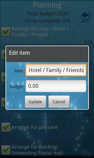 Vacation Planner is an app to help you plan and budget for your next fun trip. Its pre-programmed and customizable list contains over 120 tasks that go into the typical vacation. Check them off as you accomplish them, and keep track of what still needs to be done. Its easy and intuitive thumb-friendly check/uncheck options make using the list quick and painless. Program costs in at each step, and compare it to the overall budget at a glance, so you know how much you've spent, and how much you have left.