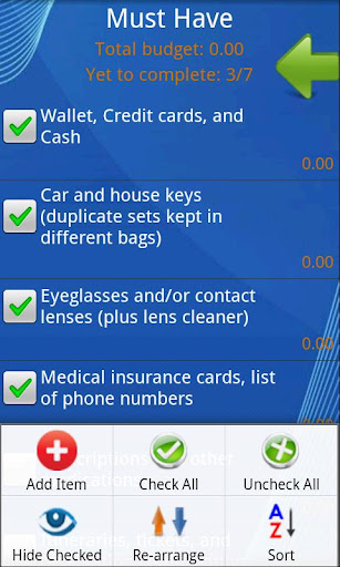 The checklist incorporates multiple features that makes using it a breeze, including several ways to manipulate entries as you go: hiding, unhiding, editing, rearranging, and deleting, among others. Save an unlimited number of lists, and export them to your SD card or other external storage. Easily share them through e-mail or any other sharing client you have on your device. This app comes with free lifetime updates, has no ads, and doesn't require an Internet connection, so you know your privacy is secure.