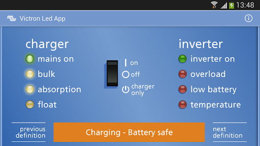 - Understand all LED codes from Victron Energy Multi and Quattro inverter/chargers. Scroll through the list of all possible codes. Or tap each LED until all of them blink exactly like the code you see on the product. The app contains normal operation codes, warnings, alarms and error codes.