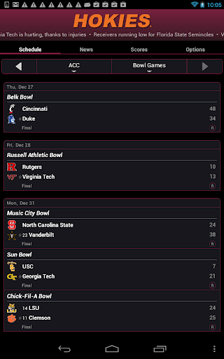 **7 Day Free Trial!** Official Virginia Tech Hokies Live Clock, with college football and basketball scores below the clock when games are in progress. This widget lets you replace the standard clock in your phone with a custom Virginia Tech clock, with instant access to scores, schedules and news (as well as other conferences). You don’t even need to open the app to see live scores—they appear automatically during live games. When no games are on, you’ll see the latest news headlines below the clock.