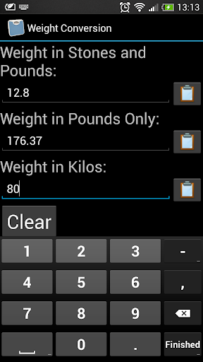 A simple and easy to use weight conversion app that converts between UK Stones and Pounds, Pounds only and Kilograms in any way you choose.