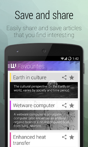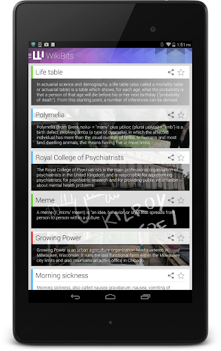 WikiBits is a beautiful app that presents you with informative bits of Wikipedia information from categories that you choose. Harness Wikipedia's massive database and wake up to a new interesting fact every day!