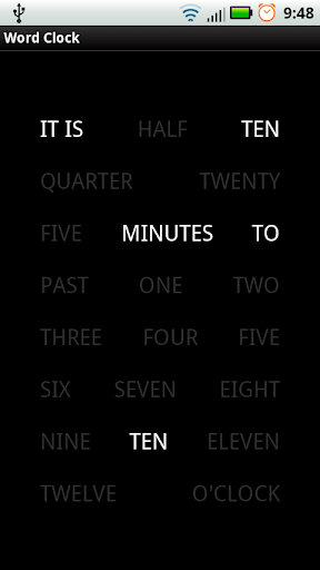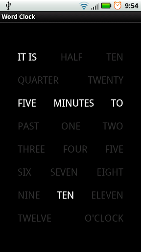 This is a simple application which displays the time in words, this is the first release and there will be more, in the next release I will have a Live wallpaper and possibly the ability to customize the clock