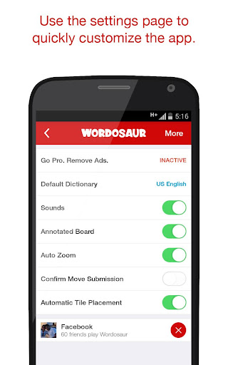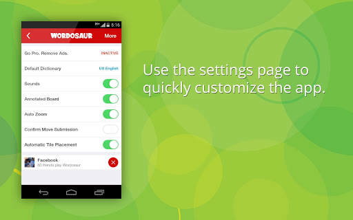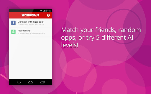 Love word & board games? Find out why Wordosaur is the T-REX of word games! You get 8 letters to make words with on a 15 by 15 square board. Score more points than your friend to win! The board has some premium squares that give you extra points. And remember, you get a huge bonus for using all your letters to make a word (50 points!). Start playing with your Facebook friends or random players from across the world.