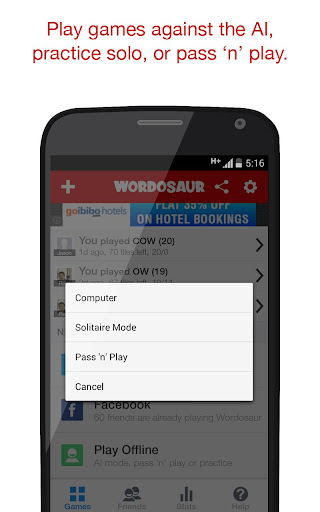 NOTE: Wordosaur does not promote the use of word builders or external dictionaries without the knowledge of your friends. This is a word game that requires skill and we appreciate players who get better at it with experience. Play fair, and have fun!