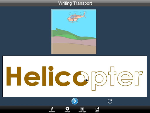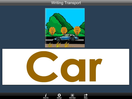 This program helps the student to learn to write transport words (Ex. Car). This program can be used with a finger or a stylus. The program allows the child to select color, and with a guiding arrow for help or without help or Autoplay which lets the student watch as the apps write the transport words. This program can be used by kindergarten children or learning-disabled children of various ages.