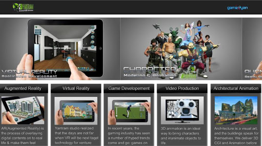 At Yantram Studio, we proudly offer 3D Architectural (Exterior, Floor Plan - Interactive 3D Floor Plan , Rendering Images Walkthrough Animation), 3D Interior Design , Virtual Reality Application Development (Interactive Virtual Tour), Augmented Reality Apps Development , Corporate Animated Video Production , Movie and Game Character Modeling and Animation, 360 Degree Panoramic Tour and Product Modeling & Animation.