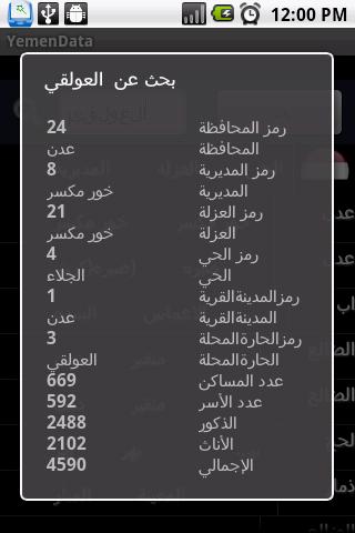 The application allows to search a database of Yemen's sensus data to locate people's villages and cities by using the family name.