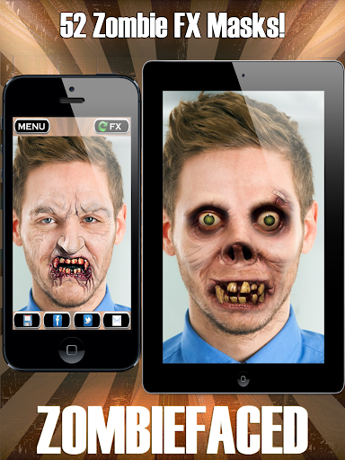 Welcome to ZombieFaced - The app that lets you transform your face into a choice of 52 different scary Zombie Faces!