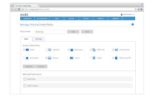 Zoolz is a comprehensive solution for businesses for backing up, archiving, data management, and collaboration by backing up Windows PCs and Servers, External drives, Network locations and more for easy data access and sharing.