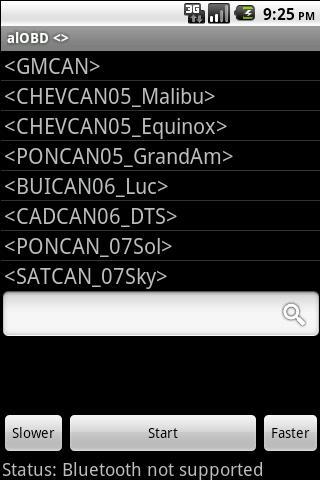 This extension to OBDII alOBD application series adds GM (Chevy, GMC, Cadillac, Buick) CAN Mode $06 parameters. This set supports vehicles 05-10. OBD On-board monitor results for Misfires, Catalyst, EVAP, EVPD, EGR, SAR, Oxygen Sensors, Catalyst Monitors, etc. can be viewed graphically and saved.