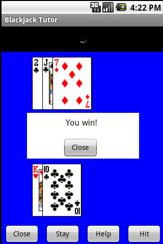 The Blackjack game provides help that tells you whether you should stay or hit based on your cards and the dealers face card.