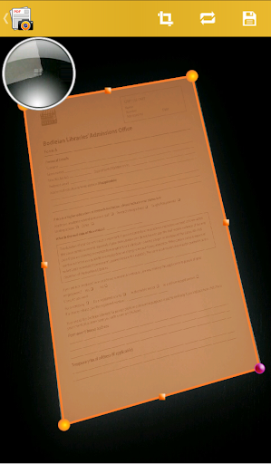 * Scanning of documents and automatic detection of corners. Limit of 2 pages per document in the Lite version.