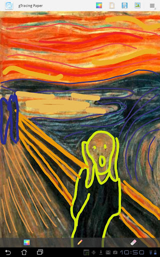 在螢幕上畫出像在寫生的圖畫。你可以將照片匯入畫布,並照著描繪(不修改原圖像),將畫好的圖案透過電子郵件傳送給朋友,或者用它來練習你的素描技巧。
