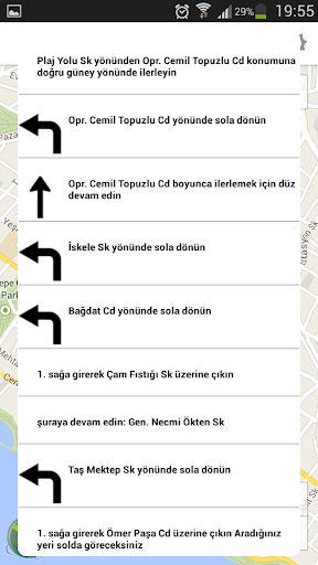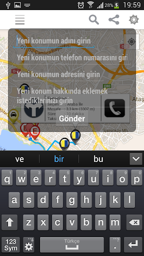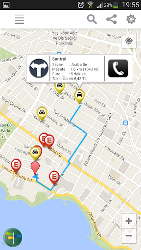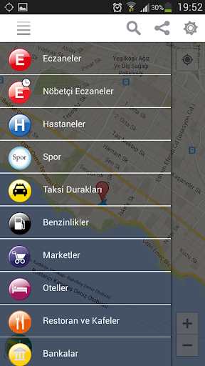 Uygulamamız kullanıcının gitmek istediği yeri parmağını harita ekranına basılı tutarak belirlemesine, bu noktaya hangi yolu kullanarak (yürüyerek veya araç ile) gideceğine, ne kadar sürede ulaşacağına, taksi kullanırsa ücretinin ne olacağına dair bilgilerin yanısıra o lokasyonda bulunan Eczane, Nöbetçi Eczane, Hastane, Benzin İstasyonu gibi hizmet sağlayıcılarının dağılımlarını da gösterebilmektedir.