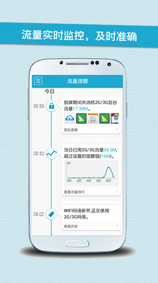 - 流量提醒:当流量不足时及时提醒,自定义提醒时段,当流量超支后自动断网,不为流量多花一分钱;