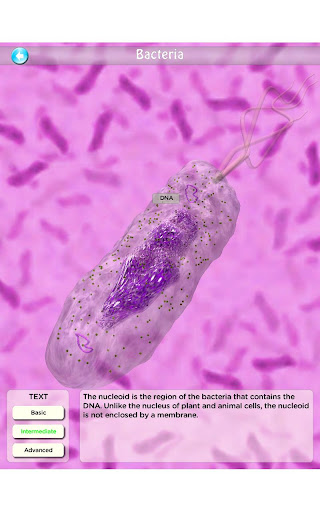 You can use your finger to tap on parts of the cell to select and zoom in on that particular organelle. Each organelle comes with a name and a short description of its function in the cell.