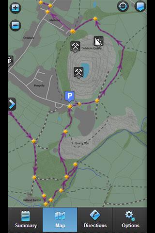 - Gives you an accurate map of the walk route and surrounding area, showing where you are on it and which way you are facing.