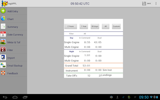 logitPPL is a digital pilot logbook for logging pilot (PPL & SPL) flying time. This aviation app will log, chart, backup, filter and summarise your flight time data. The app will also get metar & taf information and give key date warnings.
