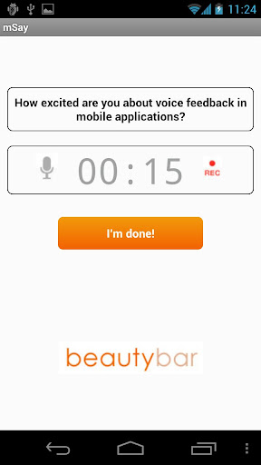 This is a demo of mSay, a lightweight SDK that lets you talk to your customers anytime, anywhere. mSay is the best way to collect voice feedback from your app users when they’re on-the-go. With the push of a button, your customers can tell you what's on their mind by talking directly to your app. You get invaluable immediate insights into what they think and feel. Saygent’s powerful voice analysis turns their stories into metrics so you can make better decisions.