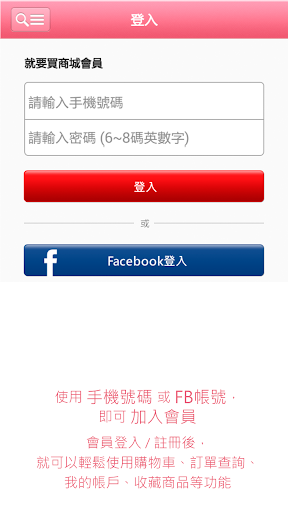 使用手機號碼或FACEBOOK帳號,就可以輕鬆加入會員開始購物,不用再多記一組帳號密碼。