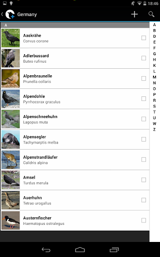 In der App stehen Ihnen die Namen von mehr als 10000 Arten und 18000 Unterarten aus der ganzen Welt in mehreren Sprachen zur Verfügung. Die Arten können Sie nach Verbreitungsgebiet und Ihrem aktuellen Standort sowie nach Namen und Familie sortieren.