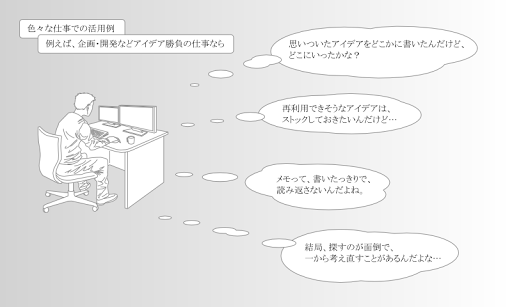 思いつき、アイデアなど、データと呼ぶには断片的で、散在しやすい小さな
