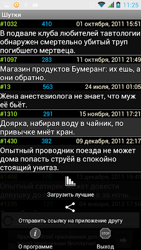 Если Вам скучно и нужно "убить" время, то можете воспользоваться приложением коротких шуток и анекдотов. Некоторые заставят вас смеяться до слёз, а какие-то - задуматься. Во всяком равнодушными Вы не останетесь! Приложение определено для старшей возрастной группы.