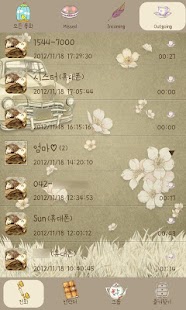 통화목록화면 > 홈버튼왼쪽 > 테마 에서 다운받은테마를 확인할 수 있으며 설정할수 있는 곳입니다.
