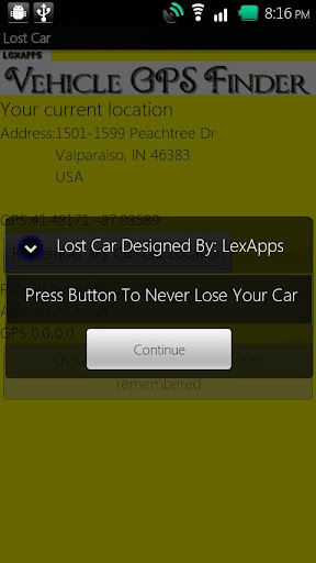 Never lose your car again at a mall, concert, shopping center, etc... Simple and easy to use (GPS must be enabled)