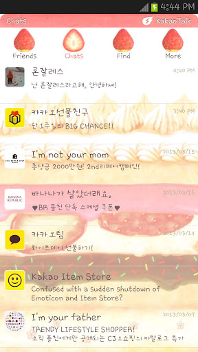 달콤하고 부드러운 파르페! 케이크! 딸기! 생각만 해도 기분 좋아지는 디져트들을 듬뿍 담은 카카오톡 테마입니다. 항상 맛있는 디져트를 음미하는 기분으로 카카오톡을 즐겨 보세요!