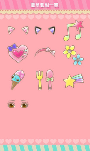 這是可以在換裝應用程式[+]HOME(Plus HOME)中裝飾首頁畫面的圖章套組喔! 按照自己的喜好調整,讓換裝後的首頁畫面更加可愛吧!