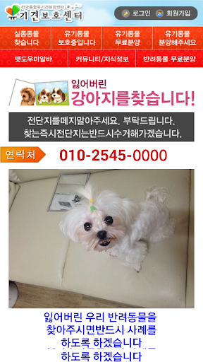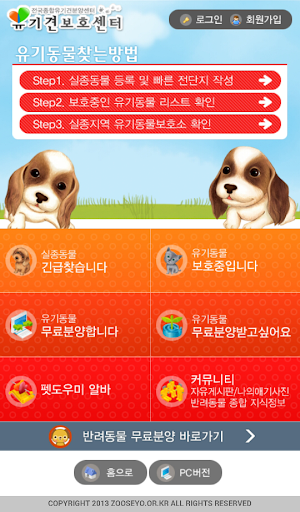 (Pc웹은 네이버에서 "종합유기견보호센터" 검색, http://www.zooseyo.or.kr)