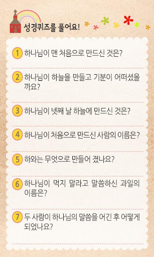 ④샌드아트 동영상과 글로 성경공부를 한 후, 성경퀴즈와 성경친구로 아이가 오늘 배운 성경의 내용을 정리 할 수 있도록 하였습니다.