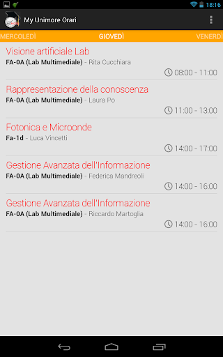 L'applicazione ti permette di avere sempre a disposizione, anche in assenza di connessione, l' orario delle lezioni.