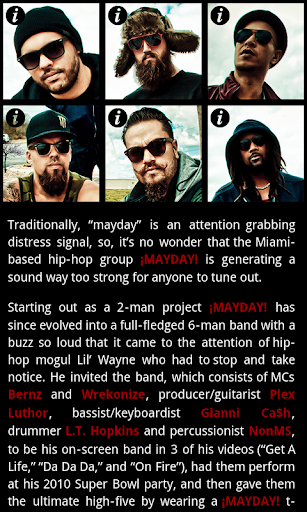 This is the official app for the Miami based hip-hop group ¡MAYDAY! which consists of Wrekonize, Bernz, Plex Luthor, Gianni Ca$h, Non MS and LT Hopkins.