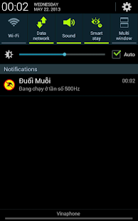 Đây là chương trình đuổi muỗi dựa trên đặc tính sợ sóng hạ âm của muỗi. Ứng dụng sử dụng loa có sẵn của máy và phát ra tần số trong vùng từ 17Hz đến 22Hz là vùng gây khó chịu cho muỗi. Tuy nhiên đặc tính muỗi từng vùng khác nhau nê chũng tôi cho tùy biến tần số phát kéo dài trong khoảng 20Hz đến 500Hz(Con người có thể nghe được khi tần số lớn hơn 20Hz).