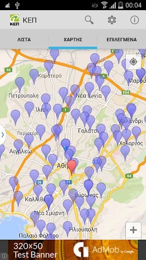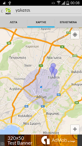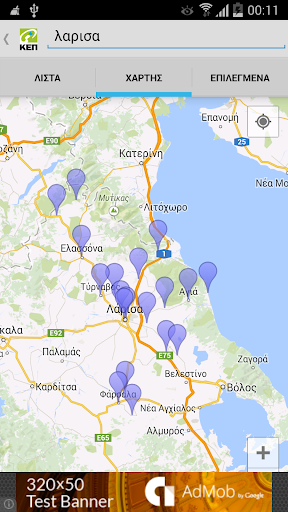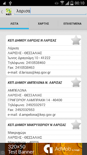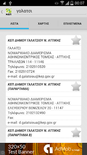 Η εφαρμογή παρουσιάζει όλα τα ΚΕΠ σε λίστα αλλά και σε χάρτη.