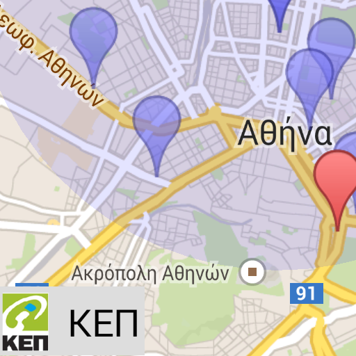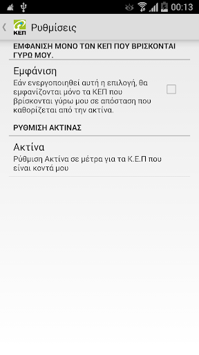 Δυνατότητα ρύθμισης, για εμφάνισης μόνο των ΚΕΠ που είναι κοντά στην τρέχουσα τοποθεσία σας, σε καθορισμένη από εσάς ακτίνα.
