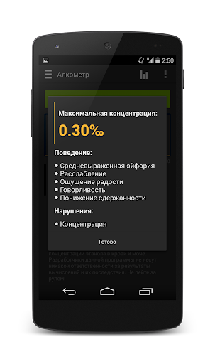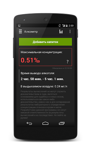 ВНИМАНИЕ: Результаты вычислений могут незначительно отличаться от реальных показаний алкотестера, так как зависят от большего количества факторов.