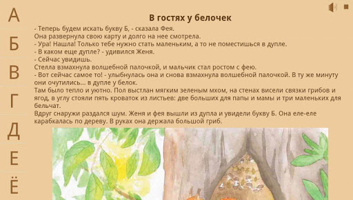 Это приложение поможет детям выучить буквы русского алфавита. Для лучшего восприятия детьми каждая буква сопровождается увлекательной сказкой с картинками. Каждая история озвучена, что позволяет лучше усвоить материал и пользоваться приложением без участия родителей.
