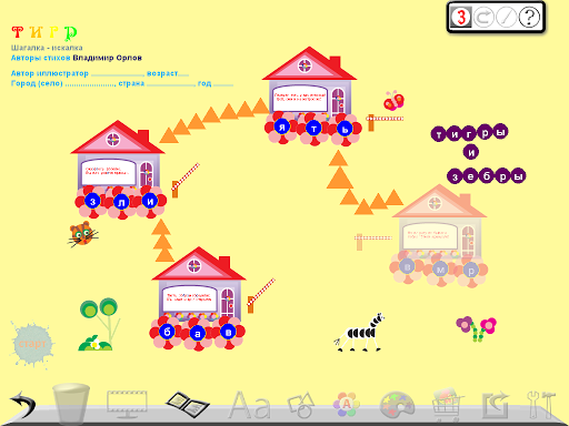 - ВАРИАТИВНОСТЬ - включает в себя 8 игровых полей (в зависимости от выбора стихов и букв), большой выбор букв;