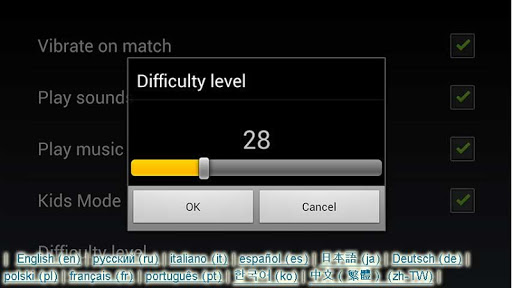**НОВОЕ!** Уровень сложности, регулируемый ползунком (дает возможность устанавливать элемент пазла при менее точном позиционировании и наоборот)