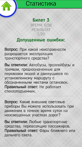 В каждом режиме в случае неправильного ответа приложение покажет вам комментарий со ссылками на пункты правил дорожного движения.