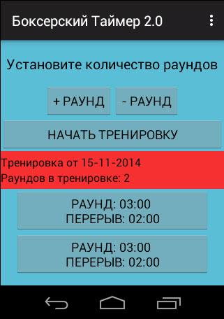 Вы сами выстанавливаете свои раунды (количество раундов не ограничено от одного до сколько вам надо, устанавливаете длительность раунда и перерыва). Вы можете сохранять тренировки на карточке для дальнейщего использования.