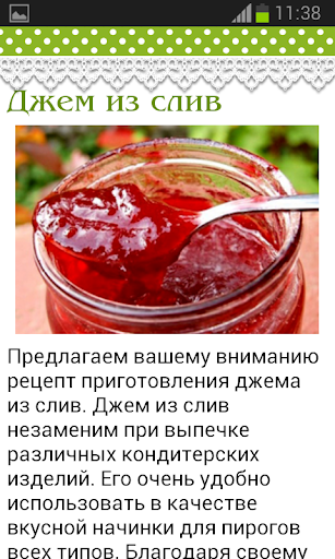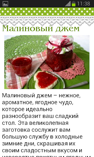 Домашнее варенье, джем или повидло особенно хороши с чаем долгими зимними вечерами. Кроме того, тосты с вареньем могут служить отличным завтраком, а каша с вареньем становится намного вкуснее и полезнее, что нравится и взрослым и детям. А что уж говорить о пирожках и блинчиках с повидлом или о невероятной пользе малинового варенья в период осеннее - зимних простуд. Устанавливайте эту программу и у вас под рукой будут рецепты чудесных, вкусных и очень полезных варенья, джемов и повидла!