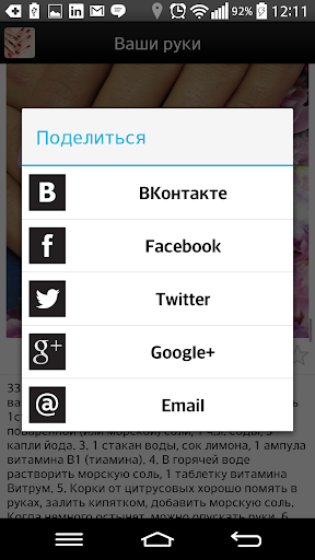 Устанавливайте приложение “Ваши руки ”. Делитесь с подругами в социальных сетях: Вконтакте, Facebook, Twitter или e-mail. Сохраняй самые интересные работы в Избранном!