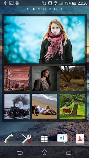+ фотографии автоматически обновляются каждый час, но вы можете обновить их, нажав на кнопку в правом верхнем углу виджета;